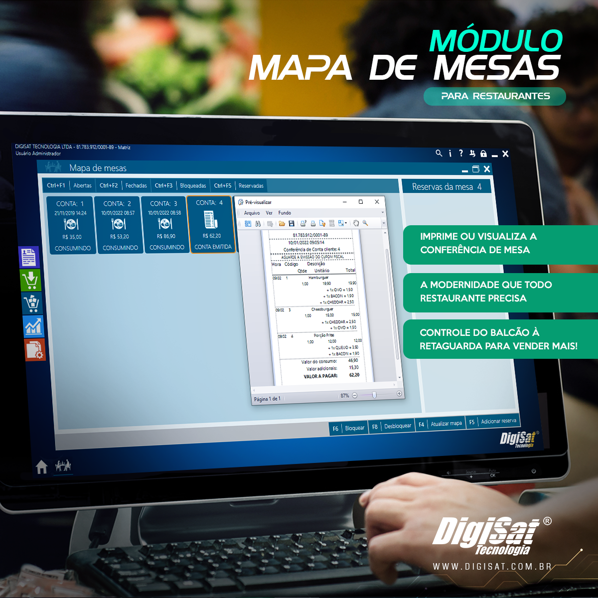 Possui Módulo para Posto de Combustível, Farmácias, Restaurantes, além de ter integração com aplicativos Mobile.